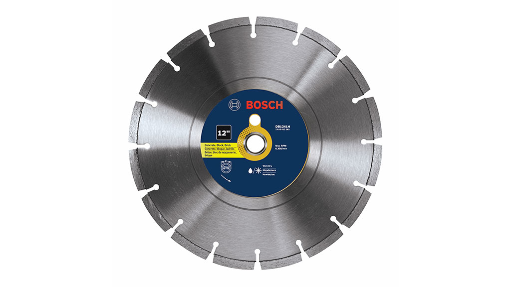 Bosch 12- and 14-in. Premium Segmented Rim Diamond Blades deliver fast, efficient cutting in concrete and other hard materials, thanks to a tensioned blade core and a high-quality diamond formulation. The tensioned steel core is engineered to ensure that each blade delivers smooth cuts with low vibration to reduce blade wobble.