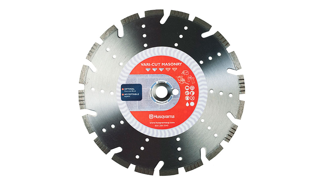 Husqvarna’s new Vari-Cut masonry blade was created for fast cutting along with long life when cutting construction block and brick. A broad range of applications make Vari-Cut a great combination blade. The blade is available in two specifications: 14 and 20 inches. The 14-inch blade features a 0.15-mm-tall segment. This blade was made to cut wet.
