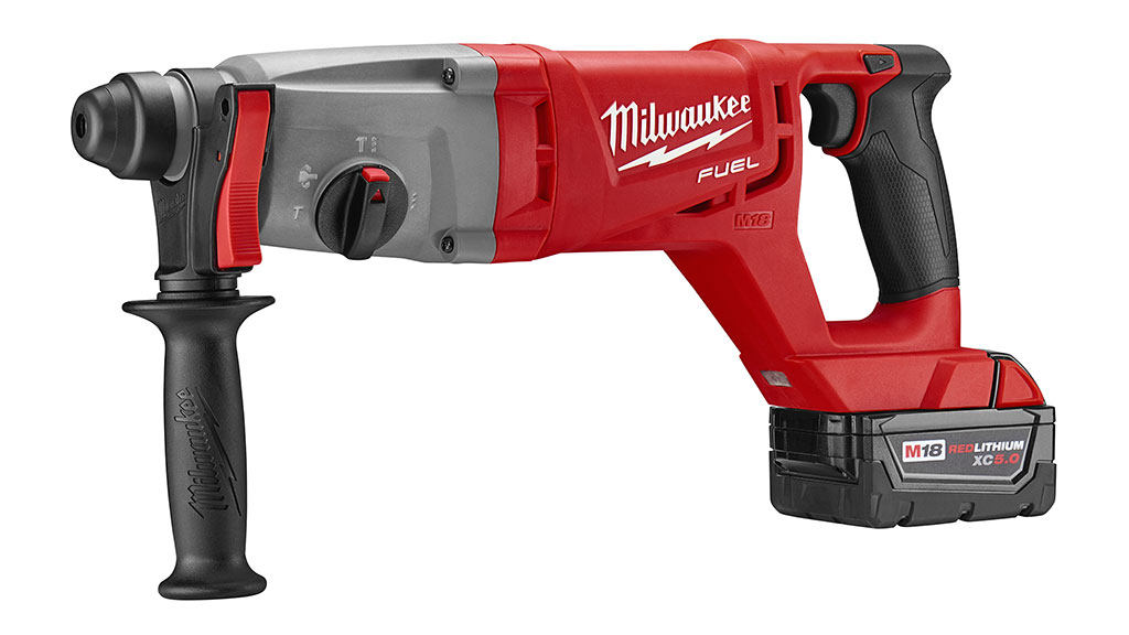 By design, the new M18 FUEL 1-inch D-Handle Rotary Hammer provides a more ergonomic experience for users who frequently drill overhead or downward. These hammers drill faster than their corded counterparts, are built with corded durability, and can exceed runtime expectations. Milwaukee is able to accomplish this level of performance by combining three exclusive innovations: the POWERSTATE brushless motor, REDLITHIUM battery pack, and REDLINK PLUS intelligence.