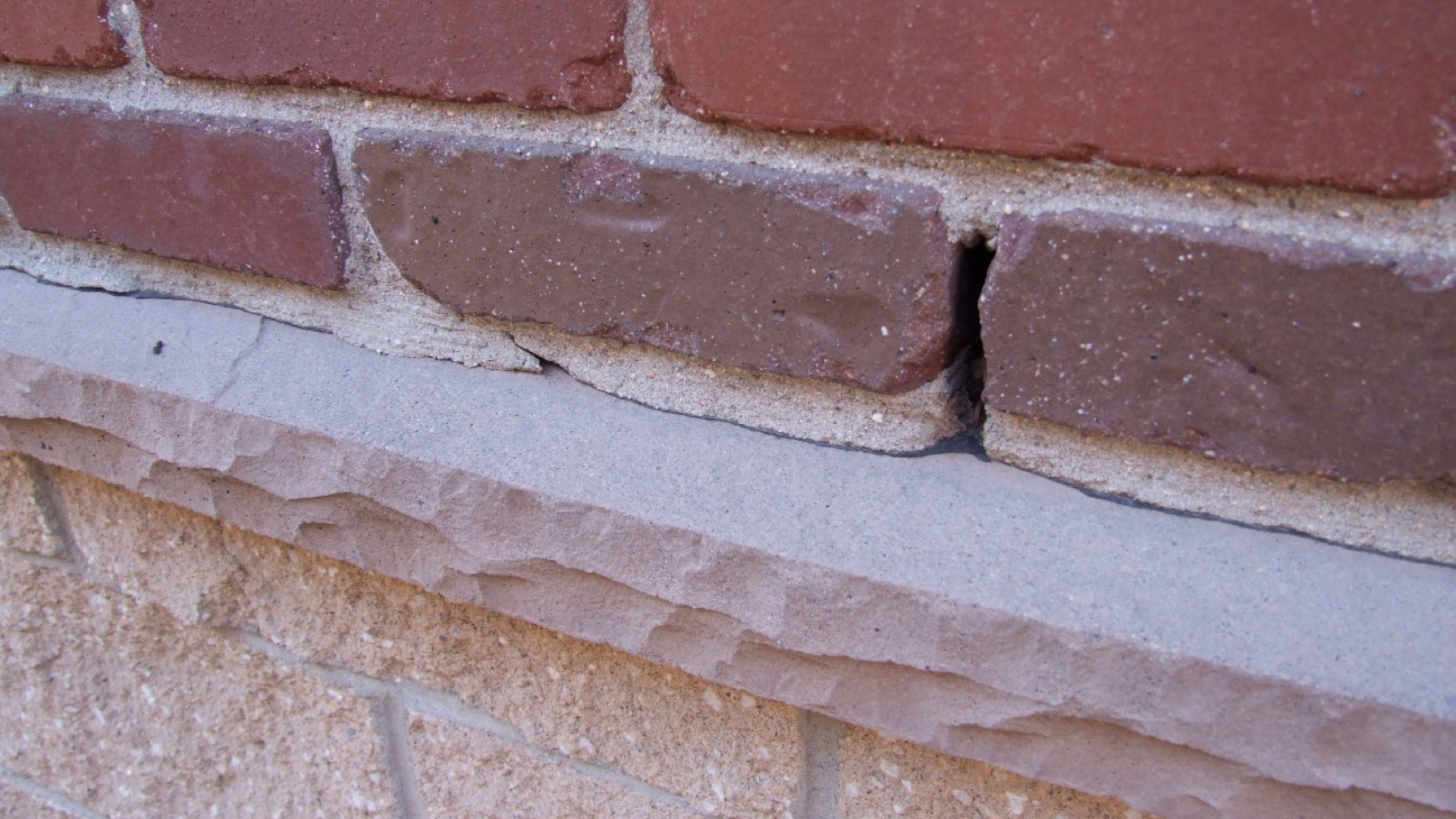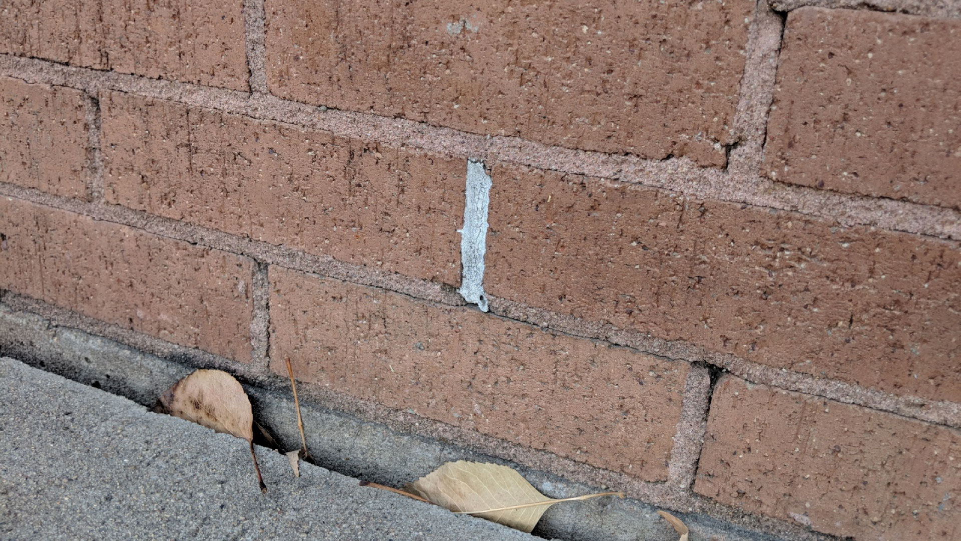 Figure 2. Location where an open head joint has been sealed after the initial construction. A roof downspout discharge is nearby that likely was wetting the wall in this area.