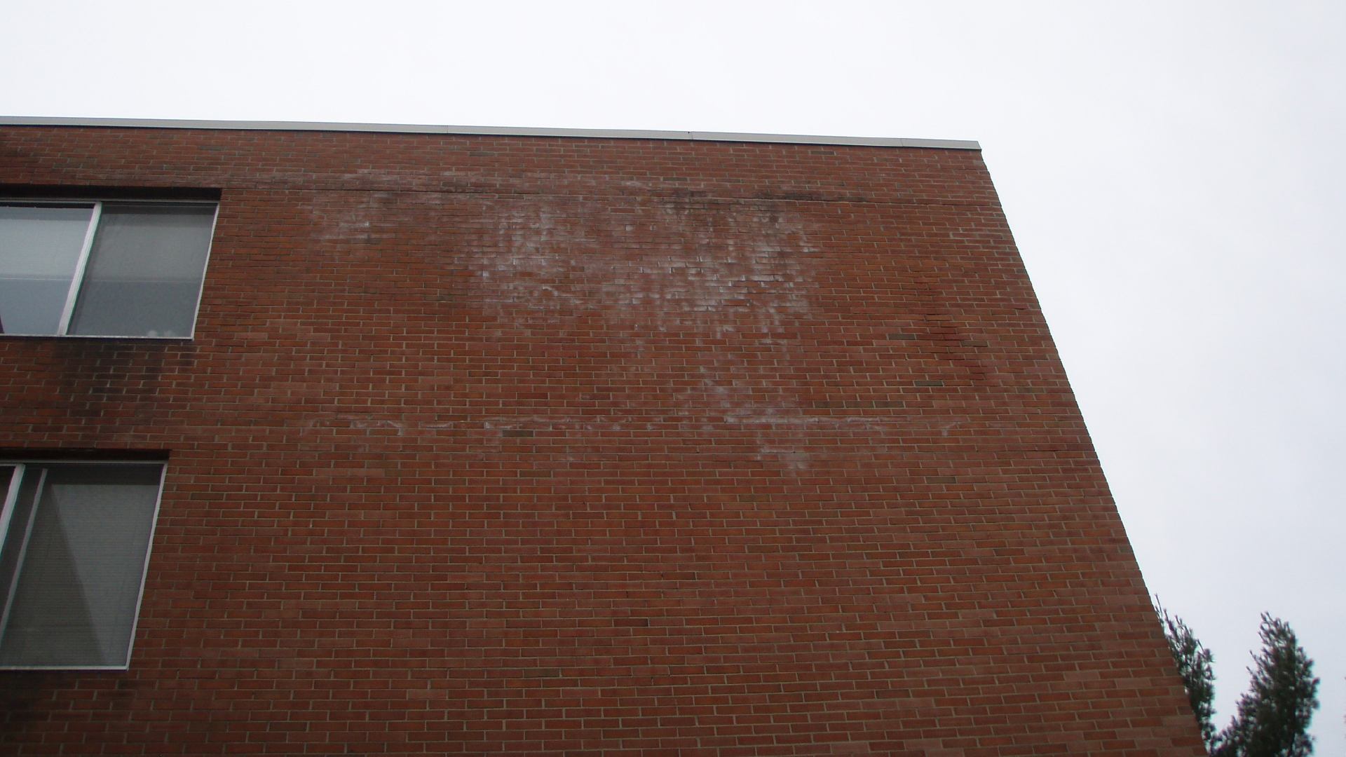 When efflorescence occurs after the building has been in service, it is a secondary bloom. This typically indicates that a change has occurred to re-initiate the efflorescence reaction. Often, it is an indication that there is a new source of moisture within the wall.