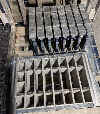 All of Spherical Block's designs are easy to manufacture on both Besser and Columbia type machines. No special materials or handling equipment are required for their production. The molds are mounted on the machine, and standard production using regular concrete mix designs begins. The arch block can be handled, moved, cubed, and palletized using standard automated block production equipment. The hex and pent blocks are easy to palletize with minimal manual manipulation. All three types of blocks have dimensions that correspond to the standard modular coordination for concrete block, allowing for convenient and regular stacking on shipping pallets.