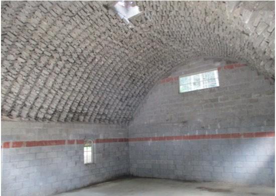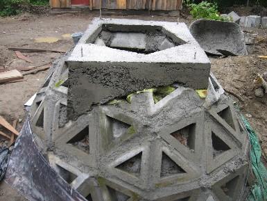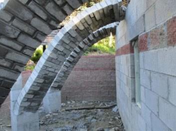 Spherical Block's masonry units are relatively simple and easy to assemble. There is a slight learning curve for the mason to gain familiarity with the various configurations made available by this masonry system. The arched roof sections or domes can either be sprung directly from the foundation or placed on top of vertical walls. The vertical walls must be strong enough to support a concrete block roof; they cannot be standard wooden "balloon frame" construction made of wooden studs. It is recommended that vertical walls be made from standard concrete block of 8-inch thickness or more.