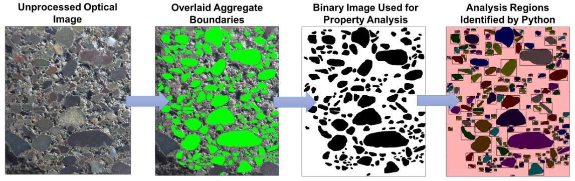 Concrete block masonry is long known to be safer than competing forms of construction, such as wooden framing. This is known even by children, as demonstrated by the tale everyone is familiar with: the story of the three little pigs and the big bad wolf. Masonry buildings can withstand high winds and severe weather events better than wood frame structures. However, in America timber frame homes have long dominated the residential market. Spherical Block’s technology extends the fundamental safety of masonry construction all the way to the top of the roof for any building or structure. Manufactured concrete blocks do not have the same strength in all directions; it is known as anisotropic material. That is, concrete block has a high-strength axis, which is the direction of compaction as blocks are made. In conventional CMUs, this high-strength axis is oriented vertically within a wall. This means that the low-strength axis is oriented horizontally, toward the outside with standard CMUs. Spherical Block’s designs always have the high-strength axis oriented toward the outside so that the building is much better protected from impacts or forces that might hit the building. This is due to the orientation of aggregate within the manufactured concrete, as shown by research conducted by Spherical, as illustrated in this micrograph. The end result is a structure around 70% stronger than standard CMU buildings.