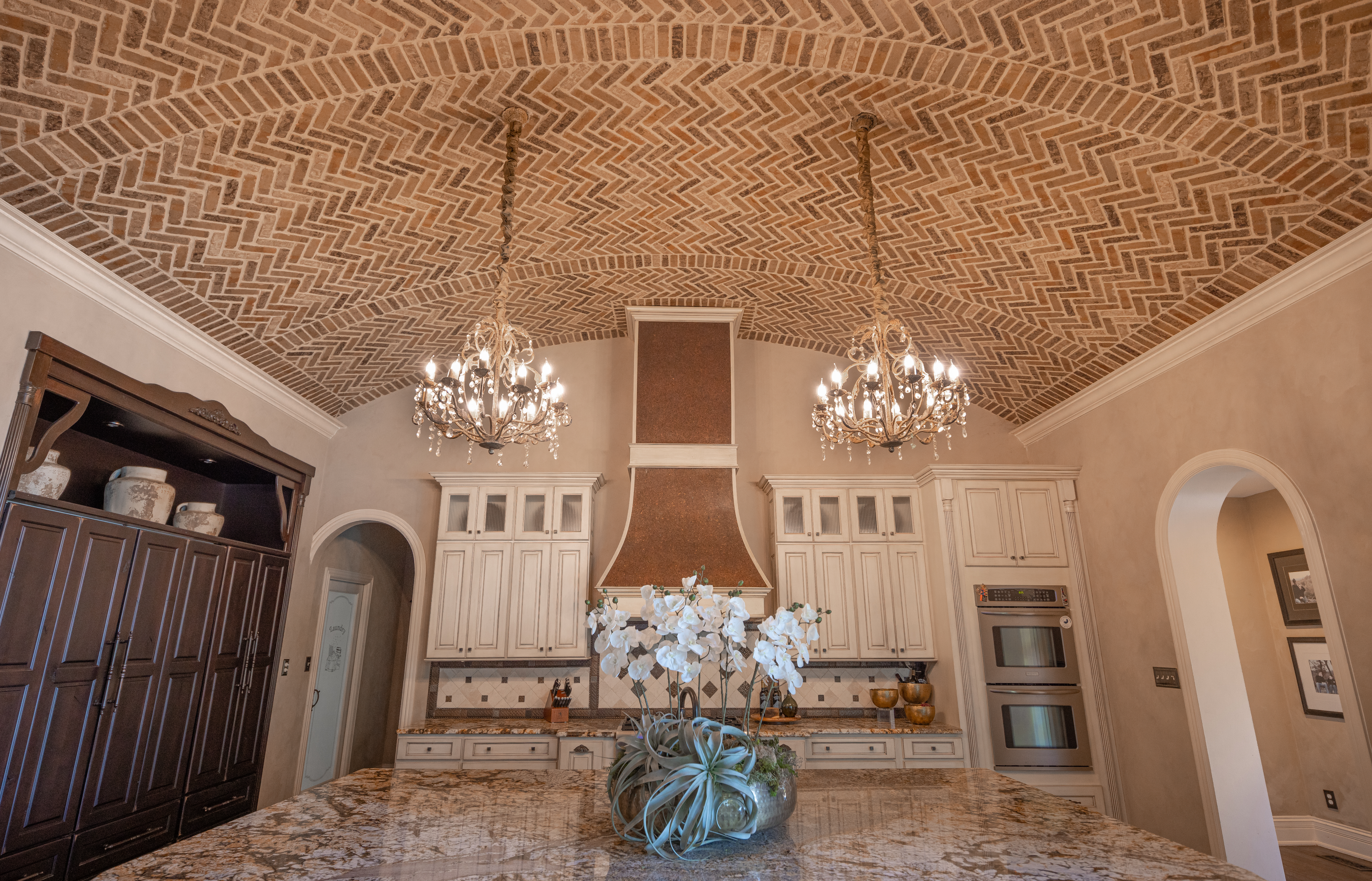 Beyond the appealing DIY-friendly nature of thin brick, this product is also a wonderful tool with which a skilled mason can showcase their skills and creativity. Multiple manufacturers within the industry have been approached by customers with a unique vision for thin brick. The Brick Industry Association’s website highlights one customer’s home kitchen that used Old Brick Originals by General Shale to create a barreled brick ceiling with intricate herringbone patterns outlined by soldier coursing.
