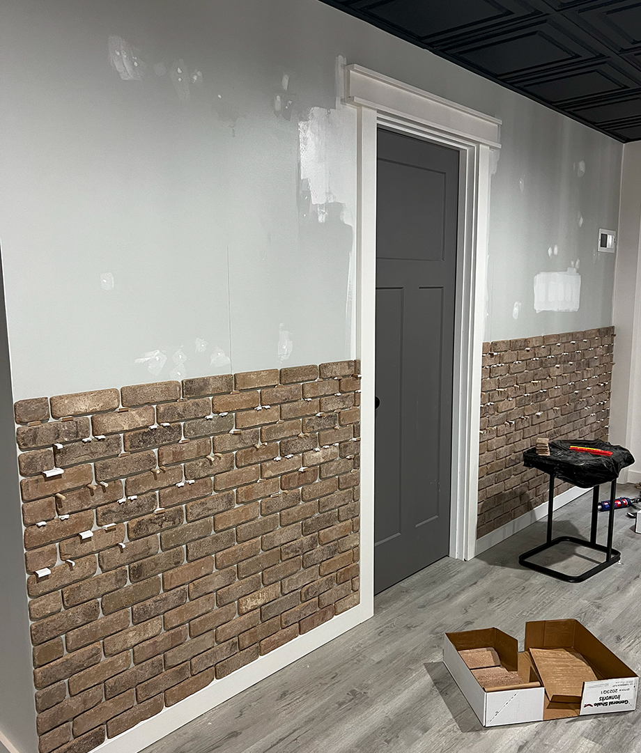 This has made thin brick very popular among content creators who have begun to partner with masonry retailers to promote certain lines of thin brick. There, they install the product, document the process, and encourage other DIY’ers to try their hands at an install. These creators range from lesser-known, local personalities such as Krissy at @homewithkrissy on Instagram who installed thin brick on a wall in her basement entertaining space in a single weekend, to well-known TV personalities such as Scott McGillivray, who has been showing viewers at home how to install thin brick in areas around their home such as floors, accent walls, and fireplace buildouts in some of his recent TV episodes.