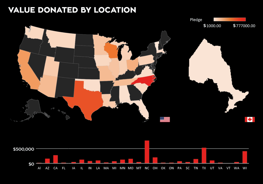 Many who have pledged have a commitment between $25,000 - $100,000+ over time, typically a five-year period. The amount you pledge should be appropriate for your business. We would never want a company to overcommit to the Foundation, and on occasion companies will need to postpone pledge years if they run into a tough year.