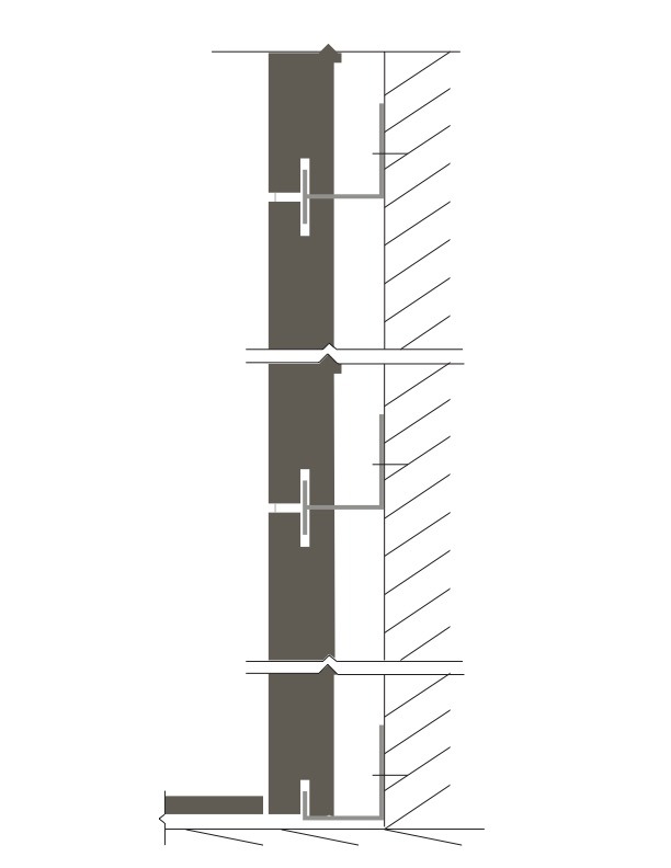 The second most common method of rainscreen anchoring is a rebated kerf design. An L-shaped cut is made at the edge of each stone piece to conceal the anchor in this design.