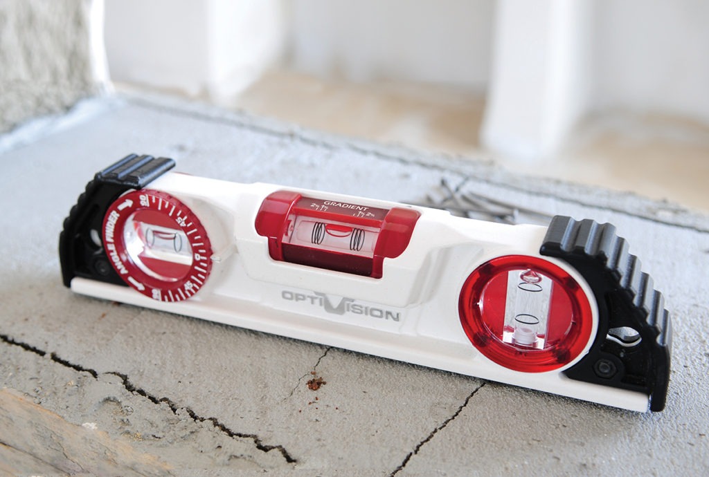 When it comes to replacing a level, Wollach suggests “shifting to a level with an advanced vial. Kapro takes pride in having the most advanced vial based on the Optivision™ Red technology. These vials are up to 8X more visible than traditional vials and are made of polycarbonate, the toughest polymer known to man, and offer the highest accuracy level in the market.” [See https://kapro.com/product/935-optivision-red-torpedo/.]