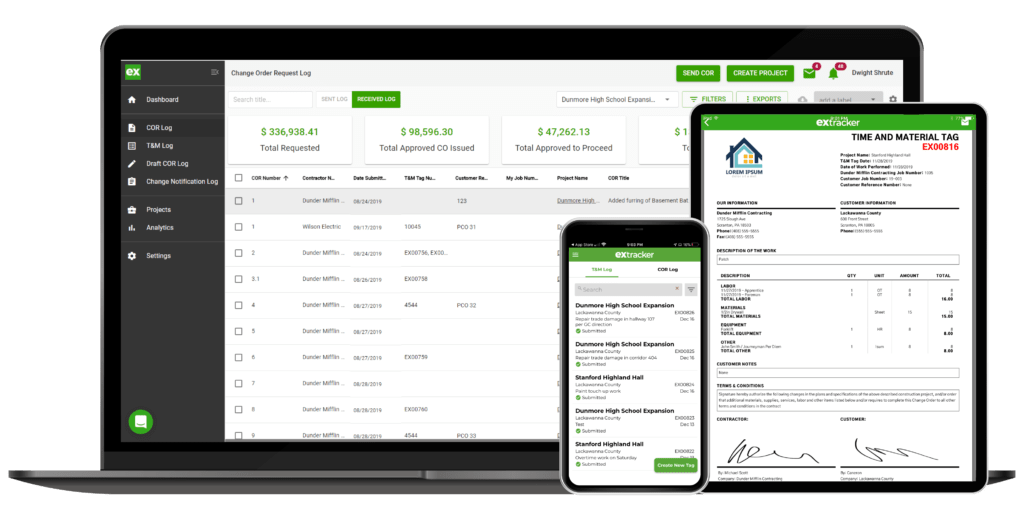 A user can invite their general contractor to use the software, (it is free for the G.C. to login and view those costs as they are accumulating). Extracker also has a cloud storage function by which you can send a shareable link to your change order log for each project. You are also able to email that link to the general contractor, which will give them access to all the change order requests for each project to keep them organized and up-to-date.