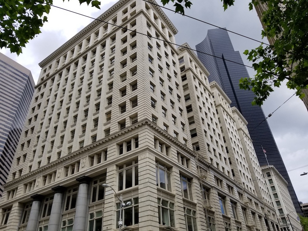 Historic masonry building illustrating many horizontal facing surfaces. Photo by Amy Woods.