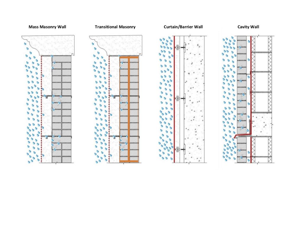 Figure 3: Masonry wall systems illustrating how they manage water. Image created by Amy Woods.