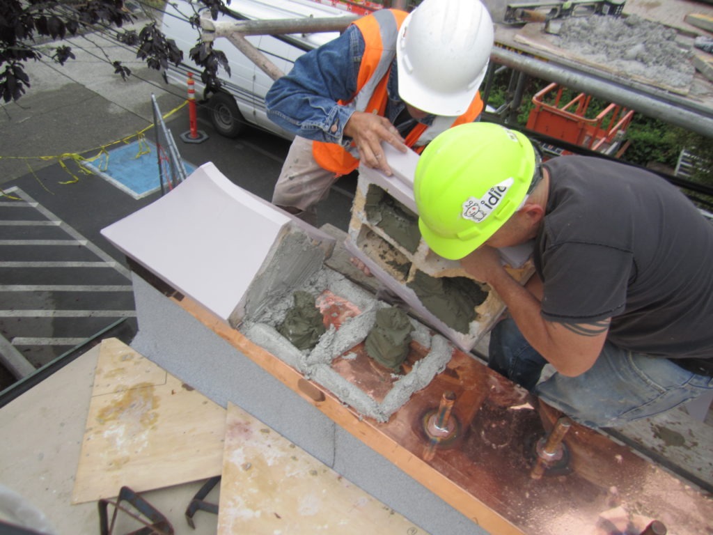 Figure 8: Through-wall copper flashing with anchor protection under coping units. Photo courtesy of SHKS Architects.