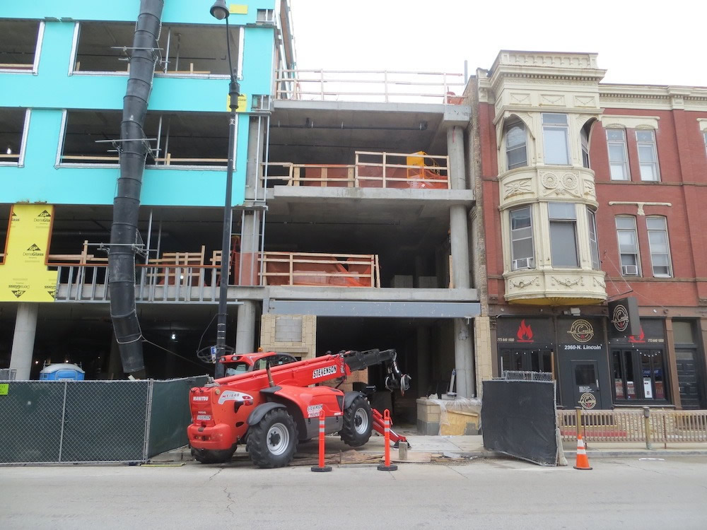 The front exterior of the circa 1890s Dental Professional Building on Lincoln Avenue in Chicago avoided the wrecking ball by having its unique, historic façade photographed, dismantled, washed, inspected, cataloged and stored for future use. It was then removed from under wraps and reassembled, brick by brick, and integrated into the new Lincoln Common mixed-use development at the edge of prestigious Lincoln Park neighborhood.