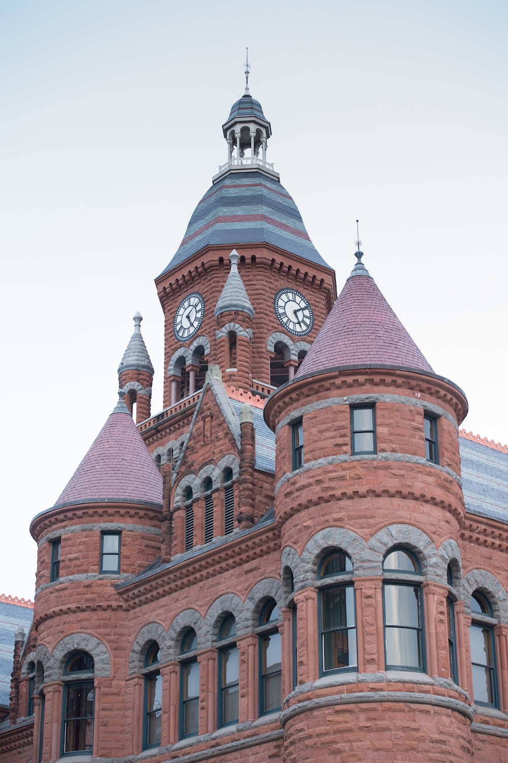 Words: Nichole ReberThe Old Red Museum of Dallas County History and Culture proves Dallas has more historical offerings than the assassination of a president. Though it could rightfully also be called Phoenix or Lazarus because the building at 100 South Houston Street has literally risen from the ashes not just once or even twice but several times. The massive sienna-bricked building with the eight turrets, the former Dallas County Courthouse exemplifies one type of architecture prominent at the time of its construction in 1890: Richardsonian Romanesque. Its massive restoration came to fruition in 2007, though the building took its proper place on the National Register of Historic Places on December 12, 1976. The museum overlooks the Trinity River. It’s situated within blocks of the John J. Kennedy Memorial Plaza, the Sixth Floor Museum at Dealey Plaza, the Plaza itself, the Dallas Holocaust Museum, and Dallas World Aquarium. The Big Red Building that Could The first courthouse, a log building erected just after Dallas became a county in 1846, sat on a piece of land designated as public land two years earlier by the city’s pioneer settler/founder John Neely Bryan. It burnt to the ground. Then Dallas became the county seat in 1850 and Bryan deeded the property to the county, which soon set about building a larger structure. County officials thought they were clever by building the second building, a $7,400 square, two-story structure, out of brick after a fire nearly destroyed the entire city. They were right; it did survive. They tore it down a few years later, however. The next courthouse, built in stages between 1871 and 1874, bore the Italianate style. When a fire partially burnt that one in 1880 the eminent architect James Flanders remodeled it, only to watch it go down in flames a year later, according to the TexasEscapes.com. Finally, fed up with ruinous fires, the county spent $100,000 (or $2.3 million today) in its search for a fireproof building, something that could withstand even the most determined flames. Flanders’ response, Second Empire design, incorporated the bones from the previous courthouse and limestone quarried from White Rock Creek. This time his building at least lasted a decade before burning to the ground in 1890. After this many fires could the city even bear another tear, or had denizens gotten to the point of choosing laughter over tears? Surely there was something commendable about their determination. This history of the little courthouse that would is part of what gives Old Red its iconic status in Dallas. Its current manifestation is the sixth consecutive courthouse to occupy this site. Considering the previous five courthouses located on that site had burnt to smithereens, Dallas county commissioners wanted something strong and formidable. The council had high expectations for this city on the edge of the frontier. Council members approved a quarter of a million dollars for the building in 1890 and saw it finished two years later. That was good timing, considering the economy took a dive in the Panic of 1893, the beginning of a four-year depression caused by the overbuilding of railroads and their shoddy financing.  Don’t Mess with the Architecture Arkansas architect M. A. Orlopp had designed the building in the then-popular Richardsonian Romanesque style, which resurrected certain European elements of the 11th and 12th centuries. The building was constructed of steel and stone, materials more able to withstand fire and similar to those Chicago used when rebuilding after its Great Fire of 1871. It contained columns of local granite and turrets stretching almost 120 feet into the Texas skies. Its original interior program was to have included six courtrooms, two libraries, twenty-nine county offices, ten restrooms, and two passenger elevators. Orlopp and Robert L. James, the general contractor, got along as famously as builders and architects today. That is to say, the latter was ignoring some of Orlopp’s design. “The issue created permanent discord, resulting in the removal of James’ name from the cornerstone soon after the courthouse was completed in 1892,” according to TexasLakesTrail.com. Typical of its highly textural architectural style, Old Red bears a complicated composition that today looks like a geometrical extravaganza. Its massing, however, because of its symmetry, calms the visual smorgasbord. Locally quarried materials such as the Pecos red sandstone bricks and blocks give the exterior its hue, hence its moniker of Old Red. Its blue-grey masonry voussoirs— wedge-shaped stones— form a brow over large round arches separated by short columns, heavy masonry walls built of rough-faced squared stone. Gabled rooflines accentuate towers topped with conical roofs. Flanders’ original design didn’t stay intact for long. White terrazzo covered original stone steps, plain wood doors replaced ornately carved ones, and the four-story grand iron staircase was ripped out to make room for offices in the thriving 1920s. Throughout the 20th century, periodic additions such as air conditioners and the removal of most of the 100 vivid stained-glass windows, attempts to modernize the building, further besmirched the building’s aesthetics. Trying to convert it into a modern office place without a dedicated effort was tantamount to putting a Model T on blocks and inserting a horn that plays “La Cucaracha.” Four decades later the city built a new courthouse, the Dallas County Criminal Courts and Records Building, elsewhere, refashioning the would-be great edifice as the State Department of Public Welfare.  A New Appreciation A century after the building’s erection, with help from the Texas Historic Courthouse Preservation Program, Dallas’s city council kicked off a $23 million restoration project. Dallas architect James Pratt, who fitted the building to include offices in the 1980s, naturally had no plans or BIM models to guide hi