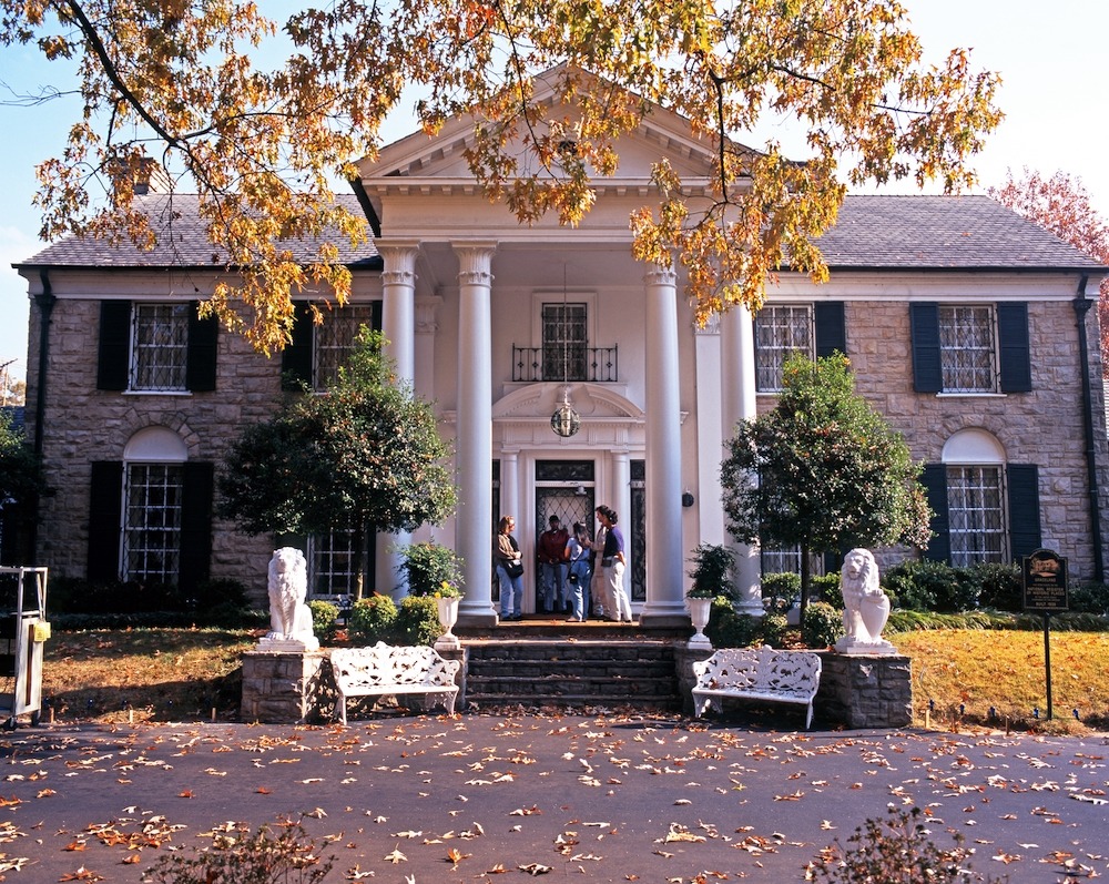 Front view of Graceland, the home of Elvis Presley, during the Autumn, Memphis, Tennessee, United States of America.