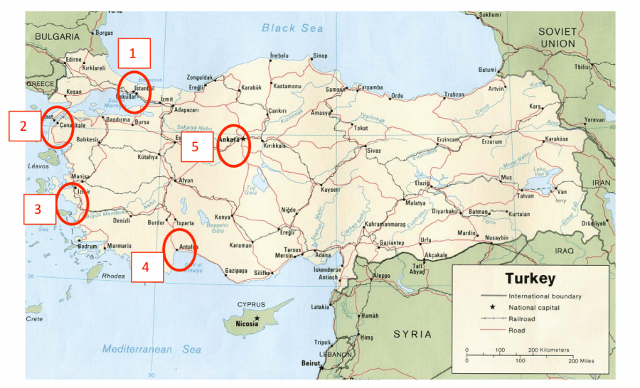 Last issue we visited Iraq. This time we’ll travel west to Turkey, a country created in the aftermath of World War I. Steeped in history from ancient cultures through the Ottoman Empire, Turkey has a wealth of historic sites. It should be no surprise that nearly all of Turkey’s historic sites are based upon masonry construction. As a little history, modern Turkey came into existence in 1923 and ended over 600 years of being part of the Ottoman Empire. The map below shows the various locations we’ll visit in this article. Figure 1 - Map of Turkey with sites we’ll visit are circled (credit blogspot.com) Masonry is the dominant construction type for commercial and residential buildings in Turkey. There are high-rise steel and concrete frame buildings with glass curtain wall that can be found in any large city in the world. But, Turkey still has many low-rise buildings with concrete frame and masonry infill. Turkey is a wealthy country is terms of history and monuments. It is also a country with large earthquakes. Often, that is a bad combination. Many magnificent monuments have been lost to earthquakes. The challenge Turkey faces is to conserve, preserve and restore their remaining built heritage for future generations. While Ankara is the capital, Istanbul (1 on map) is the country's cultural, economic, and historic center. It has been known by many names including Byzantium and then Constantinople before becoming Istanbul. Founded in 660 BC, it was the capital of the Roman/Byzantine, Latin and Ottoman empires for most of the time period of 330 AD to 1923. Today, Istanbul (Figure 2) is the world’s 7th most populous city and is partially in Europe and part in Asia. According to the World Trade Organization, it ranks 6th as a world tourist destination. The historic center of Istanbul is also listed as a UNESCO World Heritage Site. Figure 2 - Istanbul No matter which way you turn, you see magnificent masonry construction. The Haga Sophia (c. 537 AD) is my favorite (Figure 3). Built in only six years, the massive domed structure was built as a Greek Orthodox cathedral. In 1432, it was converted to a mosque by the Ottomans. Then in 1935, it was made into a museum which it remains today. Figure 3 – Hagia Sophia (c. 537) The dome collapsed in 558 AD and was totally rebuilt with added stone buttressing. It has survived massive earthquakes since the reconstruction. The minarets were added by the Ottomans in the 1400s, one with red brick and the other three with limestone and sandstone. The building has been studied consistently over the past five decades and is constantly being worked on to conserve the structure. The interior of the Hagia Sophia is so massive (180 ft tall) that the copper portion of the Statue of Liberty would fit inside easily (Figure 4). The construction is primarily brick faced in stone inside and out and having stone columns; the added buttresses are also stone construction (Figure 5). The initial dome was faulted for having more mortar than brick which weakened it and made it susceptible to the earthquake that destroyed it in 558 AD. The rebuilt dome was strengthened such that it has been cracked by subsequent earthquakes, but still stands. Both Christian and Islamic symbols adorn the walls. Figure 4 – Interior of Hagia Sophia Figure 5 – Stone buttresses with stone faced minaret in background Another astonishing masonry structure in Istanbul is the Sultan Ahmed Mosque (1616 AD) is commonly referred to as the Blue Mosque (Figure 6). The blue reference is to the remarkable blue tiles of the interior (Figure 7). For a 3D view of the interior, see http://www.3dmekanlar.com/blue_mosque.htm. The mosque can hold 10,000 worshippers. On these ancient structures, cleaning and conservation is an on-going process. In 2013, the back left minaret in Figure 6 was dismantled and rebuilt after it was discovered to be tilting over 2 inches; safety was a concern. Recently, a new three and a half year restoration was announced. This will be the most significant project undertaken since it was built nearly 500 years ago. The work will be performed and while leaving the mosque open for services and visitors. Figure 6 – Blue Mosque (c. 1616) Figure 7 – Interior of Blue Mosque It would take days to see all the marvelous masonry of Istanbul. Figure 8 shows the Ottoman arches at Topkapi Palace (c. 1465 AD) which is behind the Hagia Sophia. The workmanship is truly marvelous with tight joints. Figure 8 – Topkapi Palace Courtyard Figure 9 shows a section of the walled city. The construction dates are unclear but most were built from the 8th to 15th centuries. This one is along the waterfront has an intermix of Roman brick with stone from previous repairs. Figure 9 – Ancient walls of Istanbul Figure 10 shows a more recent restoration and finest examples of a fortress sea wall. The banded brick was original and serves as header courses for the stone. The colored mortar is a recent embellishment. This wall type can be found on numerous walls throughout the Ottoman Empire. Figure 10 – Restored wall Leaving Istanbul, we travel to Ancient Troy on the west coast of modern Turkey (2 on map) just south of current day Çanakkale. However, it was once part of ancient Greece. To many people, the image of Ancient Troy is derived from the 2004 film “Troy” with Brad Pitt as Achilles. Visiting today, most would be surprised that the massive outer walls in the film were constructed and filmed in Cabo San Lucas, Mexico. Other scenes were filmed in Malta. The famed Trojan Horse from the movie was donated to Çanakkale and attracts many visitors. Troy (a World Heritage site) actually had at least nine cities. War, fire, earthquakes and the desire for a larger city led to multiple constructions (Figure 11) built over each other. Figure 11 - The many cities of Ancient Troy (credit salimbeti.com) Walking the site today is quite confusing. Excavations have exposed portions of several cities. Not o