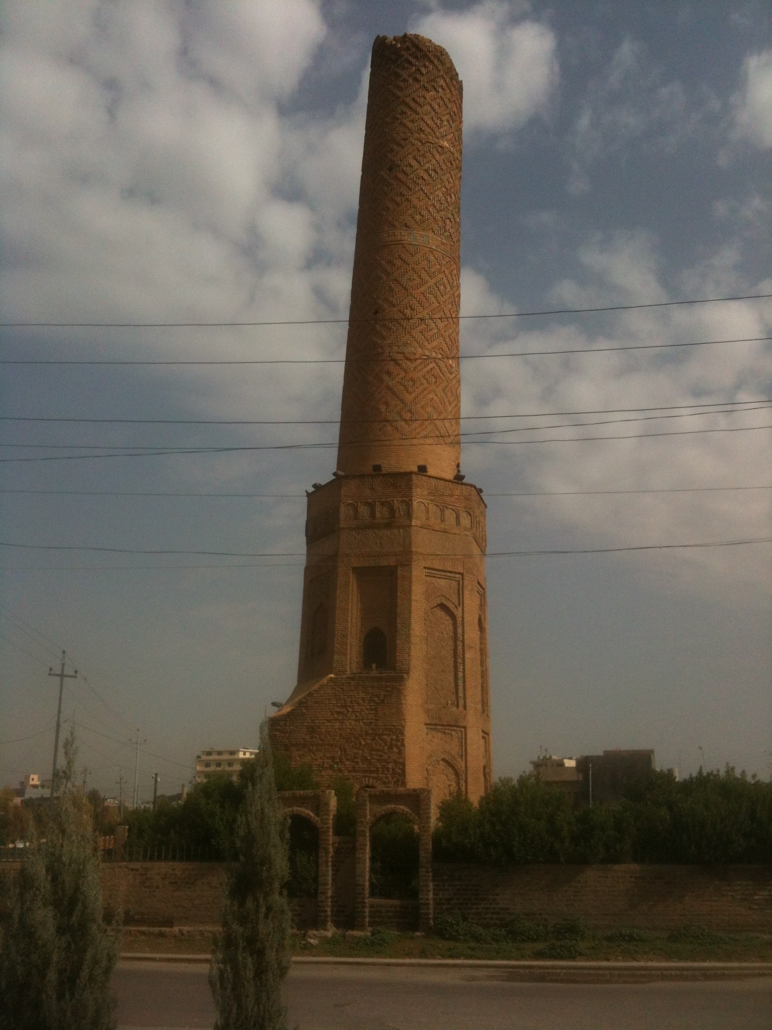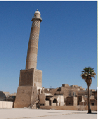 Away from the citadel, we see the 118-foot tall Mudhafaria minaret (Figure 7) dating to c. 1190 AD. The broken off top attests to the high seismicity of the region. While the mosque was destroyed, the minaret is now a monument and was restored by a Czech firm. The bricks are baked and lime-based mortar was used in the restoration. Many minarets lean due to thermal effects on the brick. One of the most significant minarets in Iraq has been awaiting restoration for years. The Minaret Al-Hadba (Figure 8) is in Mosul (c. 1172) and has been threatened by ISIS occupation. The 150-foot minaret is fully intact but leans over seven feet out of plumb.