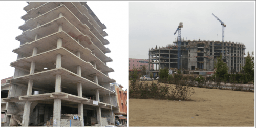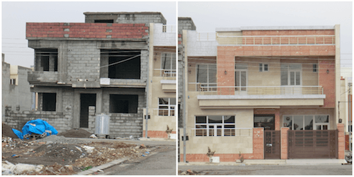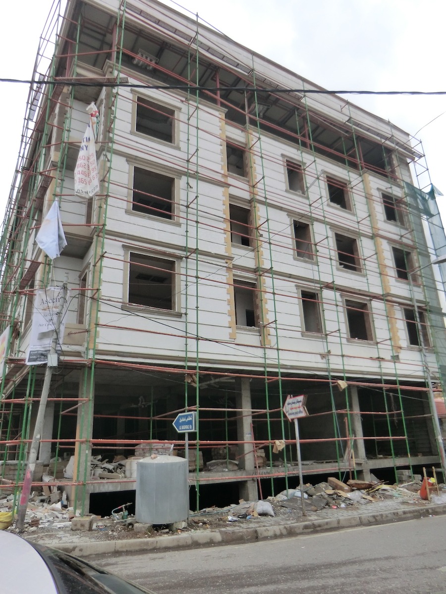 Away from the war areas, there is plenty of commercial construction as well. Figure 10 shows the larger buildings are concrete frames with masonry infill; no metal stud here. Figure 11 shows one building with the CMU infill completed  and parged.