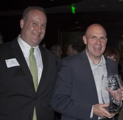 Jay Isenhour (l), manager of Acme’s Malvern plant accepts the Business of the Year award from Mark Roberts (CEO\president of Malvern National Bank).