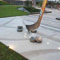 “We’re proud to have played a part of this project which, for Boston, is closely tied to our passion for sports,” said René Marais, Ready Mix sales manager for the Northeast Region of AIUS. “The hockey imagery concepts for the arena’s main entrance were very detailed and creative. For example, the curvature lines by the hockey stick reflect the lines a player makes when he cuts hard on the ice, and the additional exposed white stones illustrate ice shavings kicked over by the skating blade.”